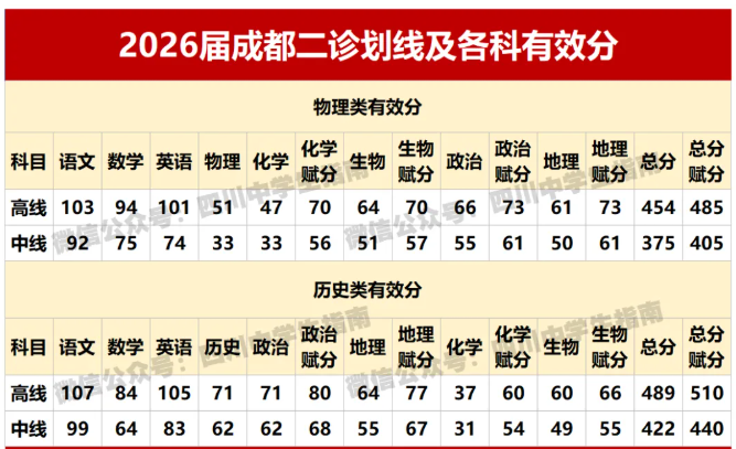 下面是成都二诊分数划线2026年汇总: