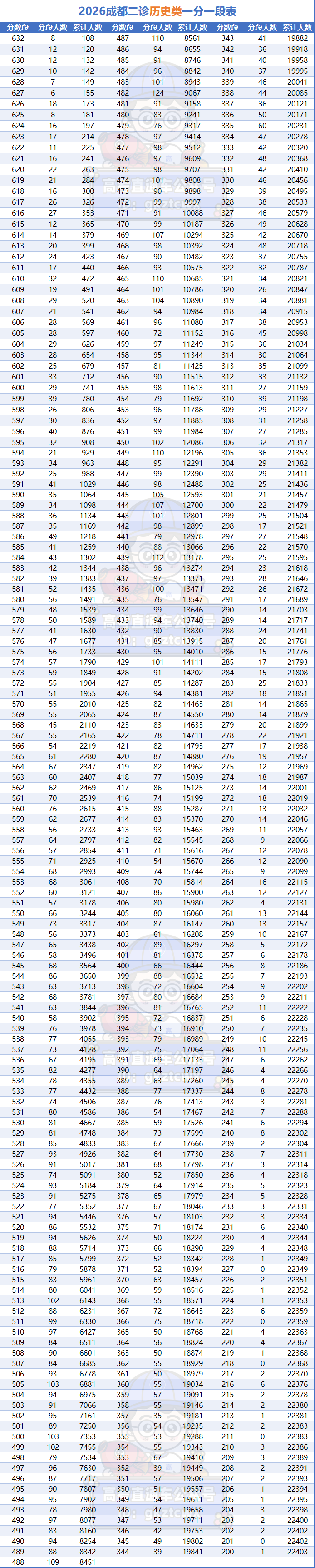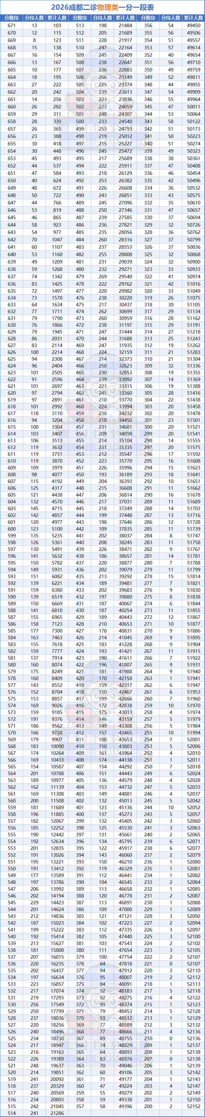 二、2026成都二诊成绩排名及一分一段表