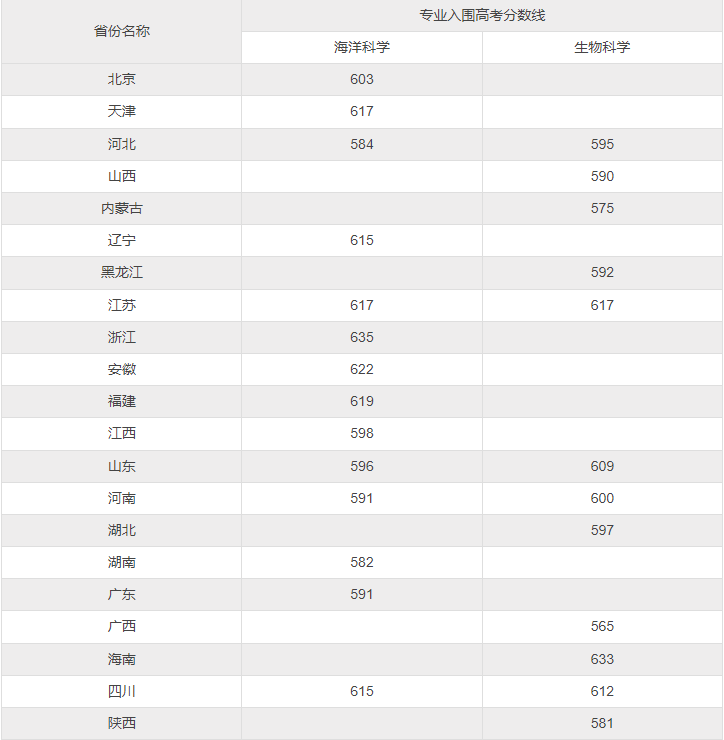 各位可以在圆梦志愿APP查看中国海洋大学历年高考分数线。
