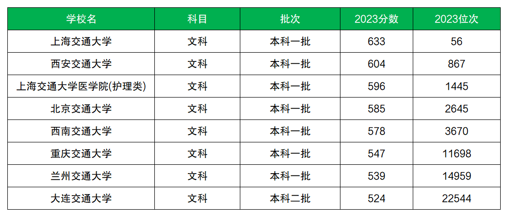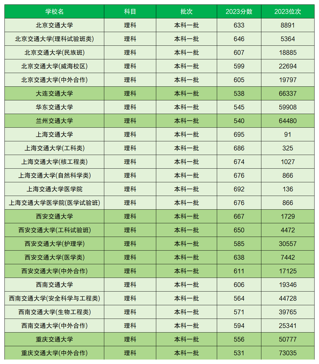 下面我们以2023年四川省招录数据为例,为大家展示这些交通大学的分数线情况,以供2024届考生参考。