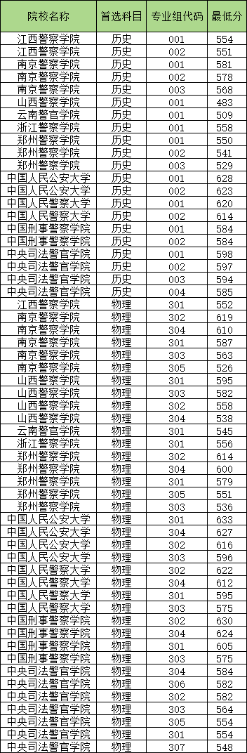 山西提前批公安院校院校分数线: