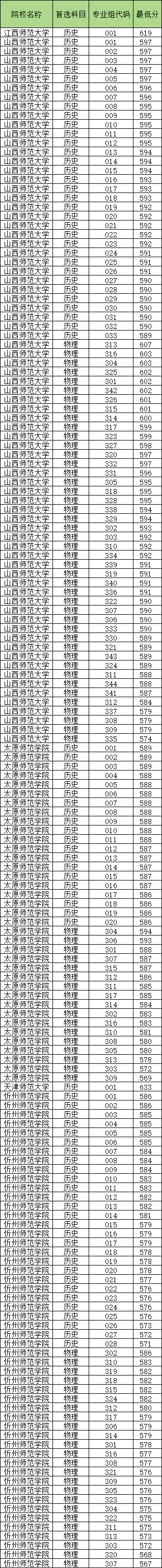 2025年山西提前批国家公费师范生各专业组分数线为: