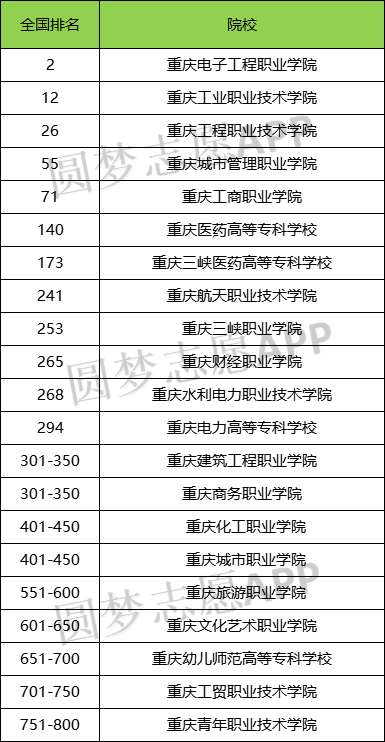 3、重庆市内排名第3的是重庆工程职业技术学院,该校在全国大专学校第26名。