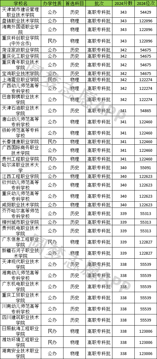 专科物理类340分左右(338分-343分之间)能上的大学有5所;均为民办院校,有石家庄理工职业学院(342分)、武汉光谷职业学院(342分)、天府新区航空旅游职业学院(341分)等。