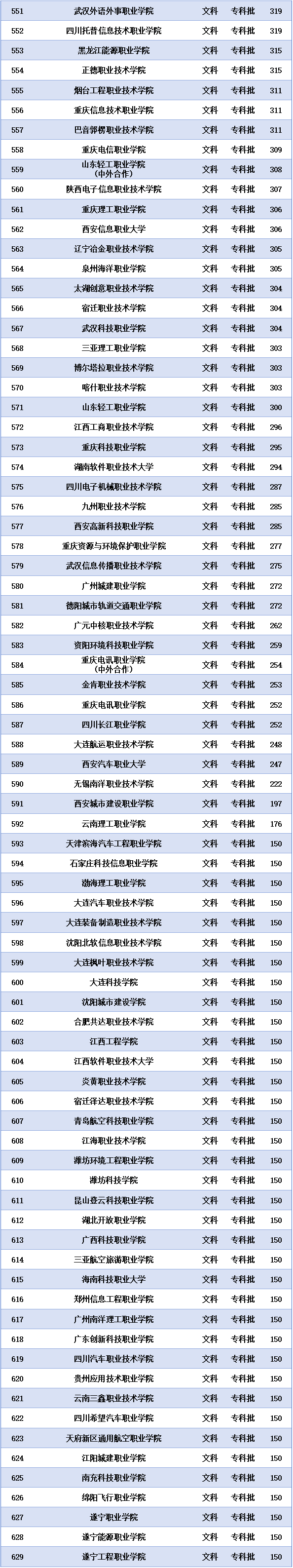 2024年四川文科理工类大学院校分数线排名一览表如下: