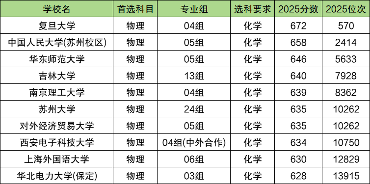 物化政可报考的数据科学与大数据技术大学中,录取分数线最高的是复旦大学,2025年04组最低分672分,是收分最高的。排名前三的还有中国人民大学(苏州校区)658分、华东师范大学05组(646分)。