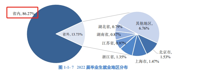 就业区域:在省内就业的人数占比78.58%,其次就是上海、浙江和北京等地;