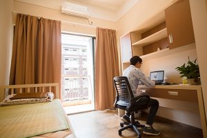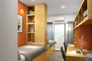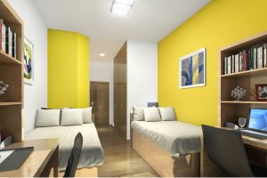 温州肯恩大学的宿舍分位双人间、三人间、单人间,宿舍拥有24小时热水、空调设备和门禁系统,下图就是温州肯恩大学的宿舍环境: