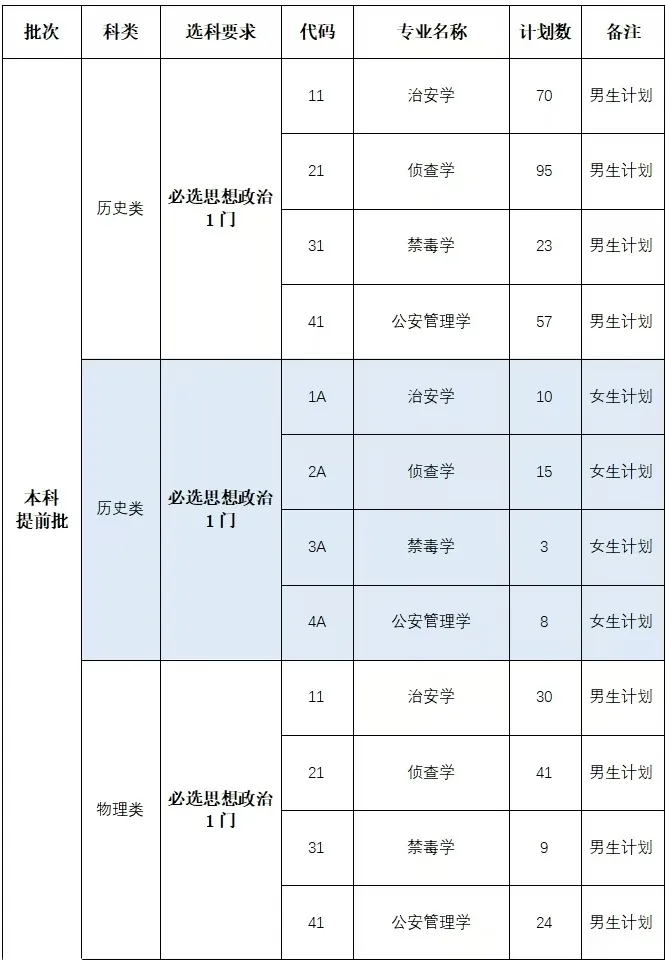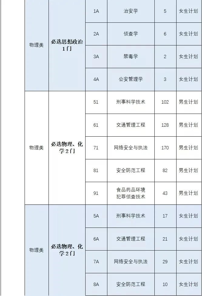 其中公安学类专业招生总数为1039人,不同专业的招生计划详情见下: