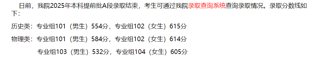 四川警察学院是我国公安类警校,2025年在四川提前批招生录取分数线如下:公安类专业男生最低分532分、女生最低分605分。
