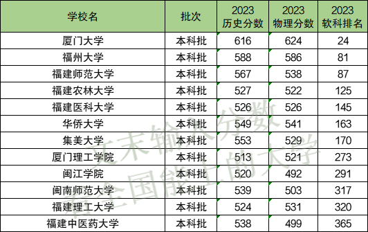2023年在福建历史类最低616分、物理类最低624分。