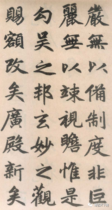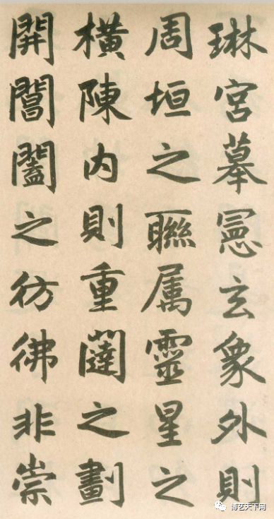 二、结体宽绰秀美,柔润内实。字貌圆润而筋骨内涵,字字彼引呼应,形体端秀而骨架劲挺。学者不仅学其形,而重在学其神。