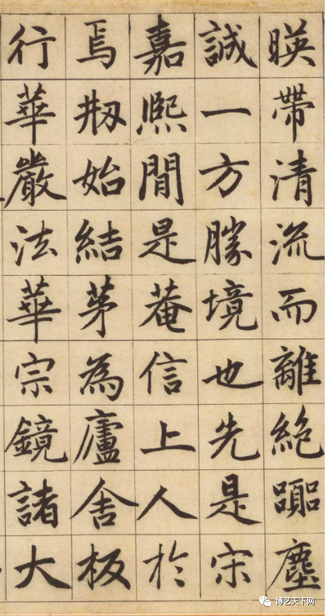三、化行为楷,笔圆架方。赵楷流动带行,赵楷兼用行书的笔法,使字字流美动人。书写赵体时,横直相安、撇捺舒展,舒心稳妥。