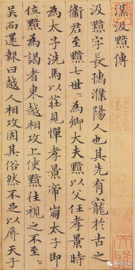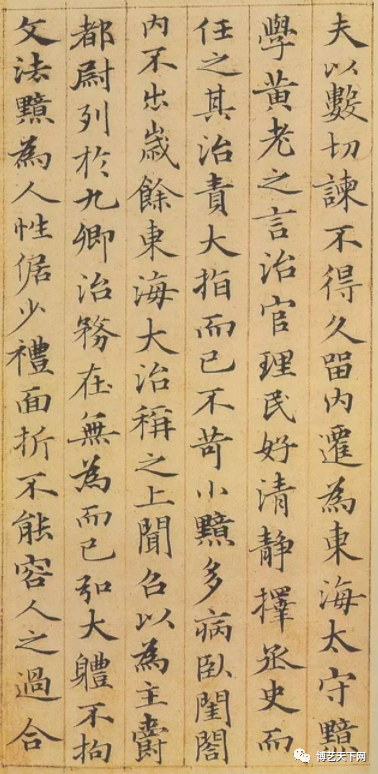 《汲黯传》被誉为赵孟頫小楷第一。落笔迅捷、从容不迫,一气呵成,而无一笔失度;其字体宽和雍容,风骨秀逸,平和简静,有轻裘带之风,极富有节奏感。在结体上,法度严谨,挺秀润健,顾盼揖让得体,寓丽开阔,秀美而苍劲。