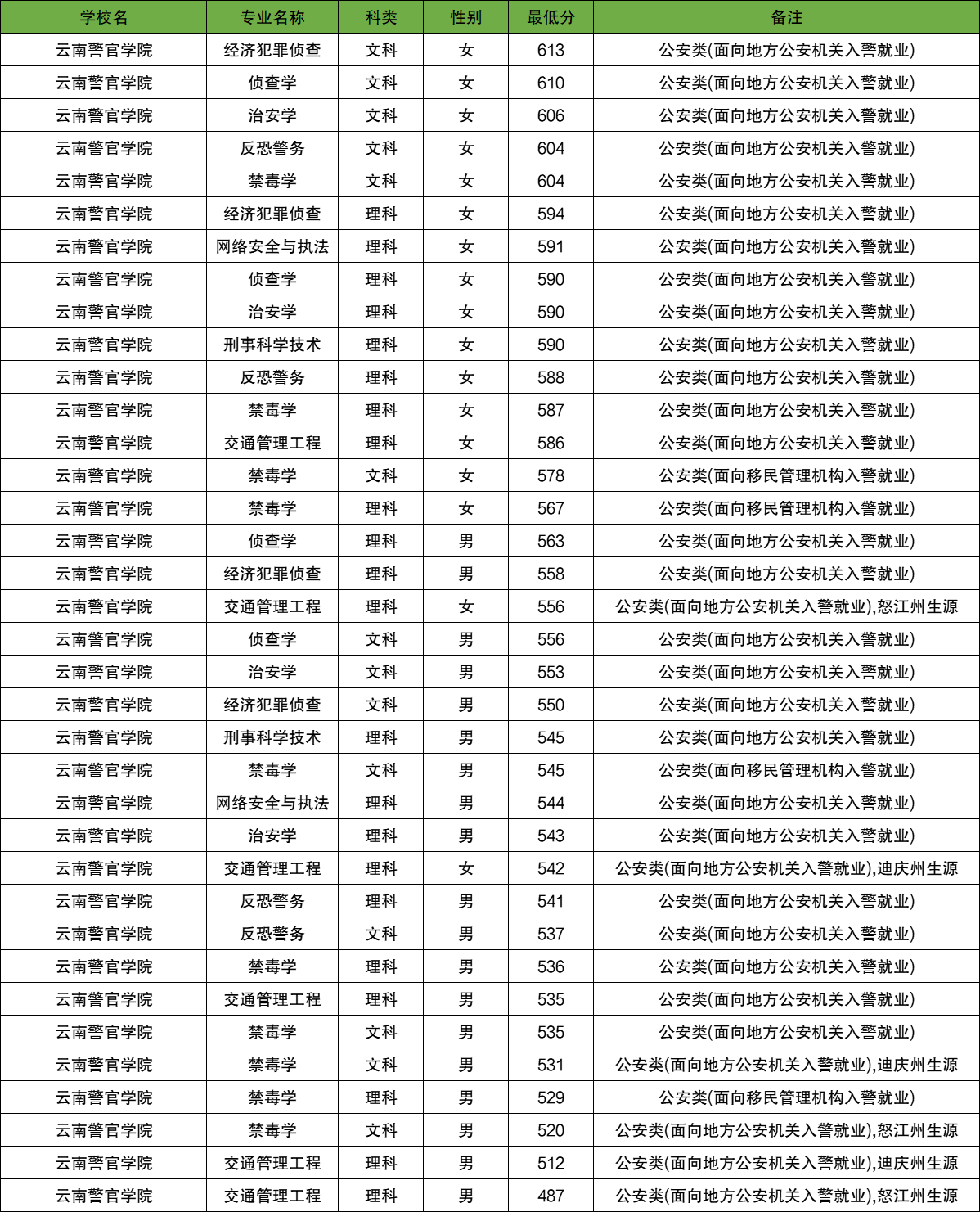 一、云南警官学院分数线(云南省)