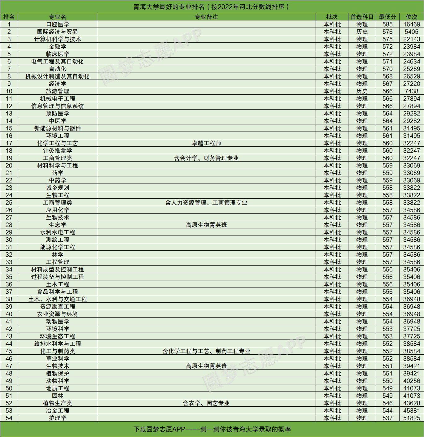 友情提醒:下载圆梦志愿APP,可查阅青海大学在你的高考省份各专业的录取分数线、位次排名。(各大手机应用市场均可下载圆梦志愿APP)