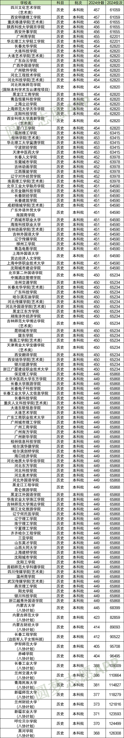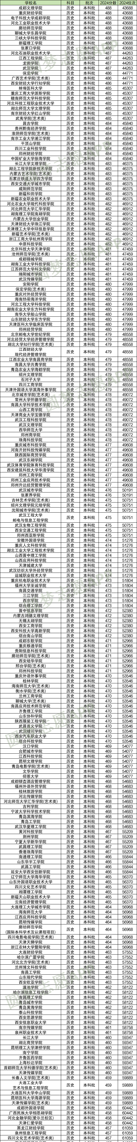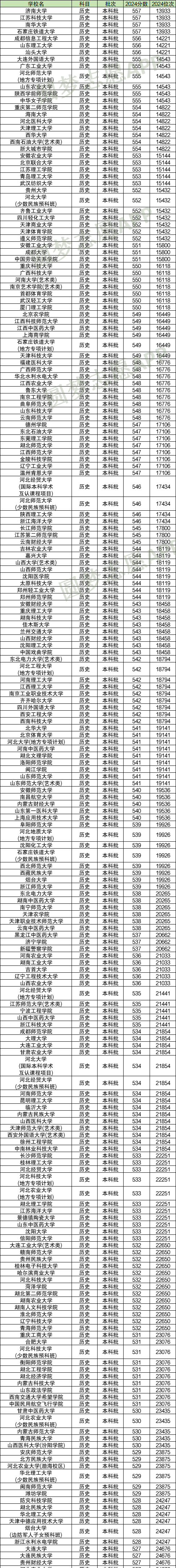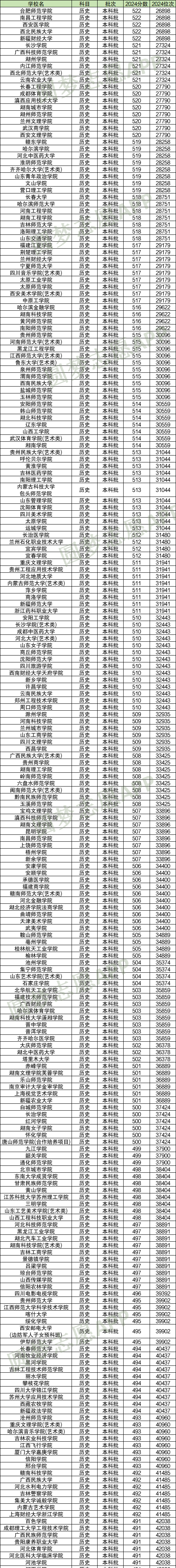 本文篇幅有限,仅列举全国本科大学在河北省历史类录取分数线。
