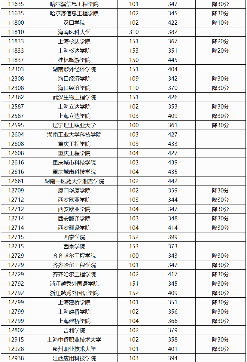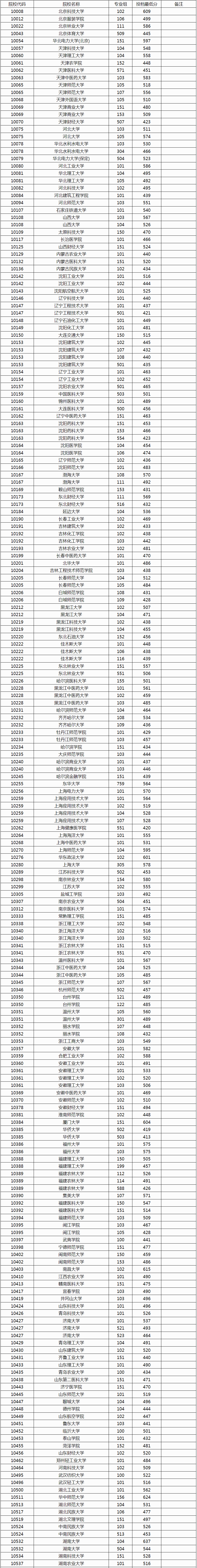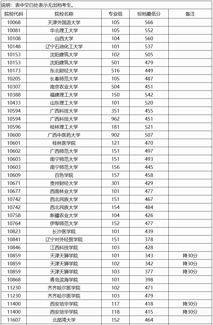 广西本科普通批第二次征集志愿学校名单及分数线如下图