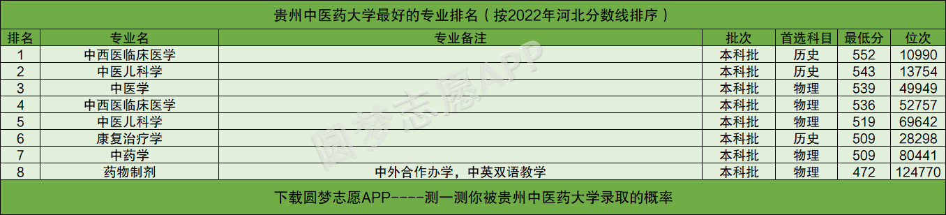 友情提醒:下载圆梦志愿APP,可查阅贵州中医药大学在你的高考省份各专业的录取分数线、位次排名。(各大手机应用市场均可下载圆梦志愿APP)