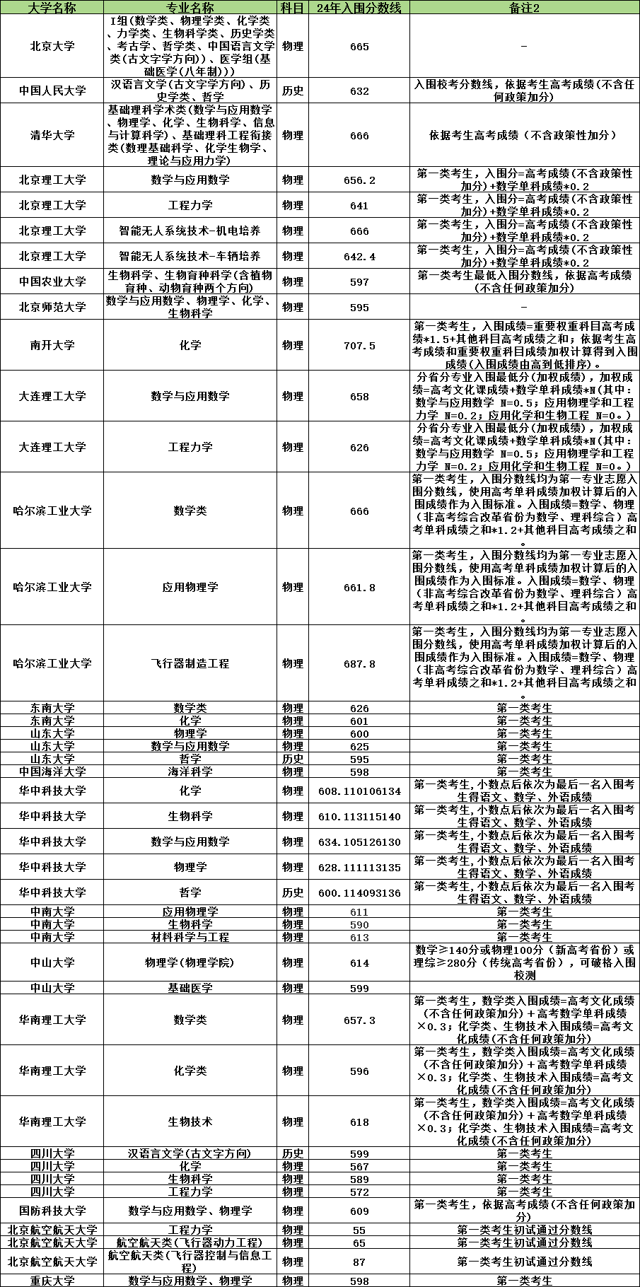 复旦、上海交大、南大、浙大、中科大、西安交大、同济、厦大、北航、兰大在高考出分前进行校测,因此没有强基入围分数线。本文整理的高校入围分数线是划线初试成绩。