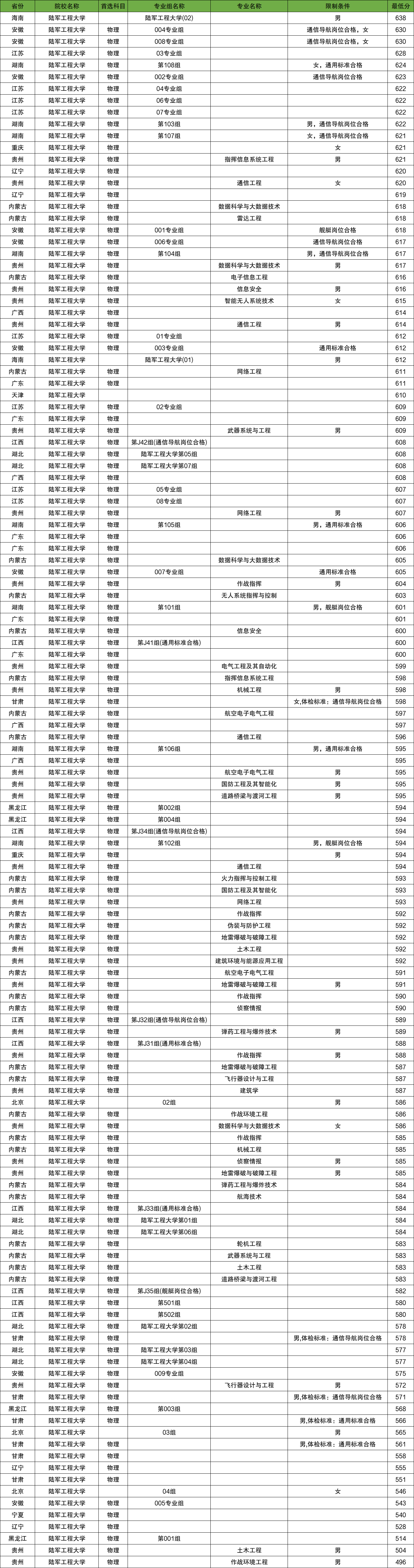 安徽:陆军工程大学在安徽物理类最低录取分数线最低为612分;