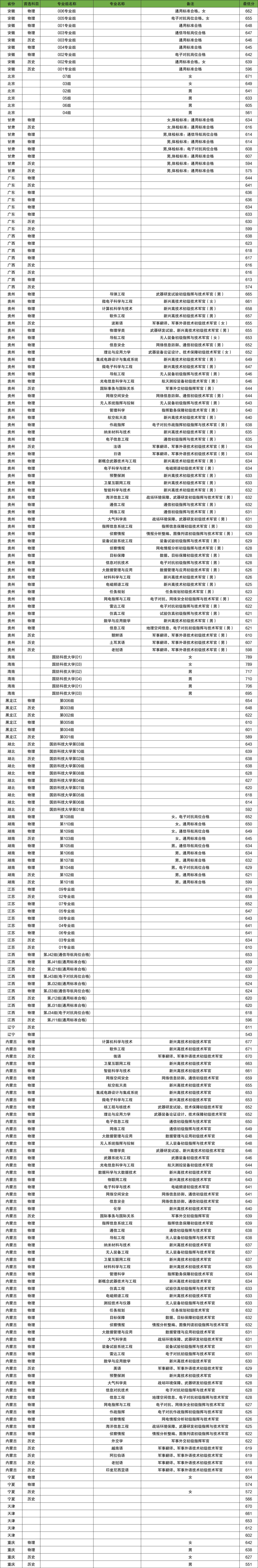 广东:国防科技大学在广东物理类最低录取分数线为633分;