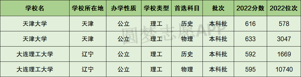 一、天津大学和大连理工大学分数线