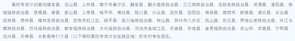 一、2026广西高校专项计划实施区域