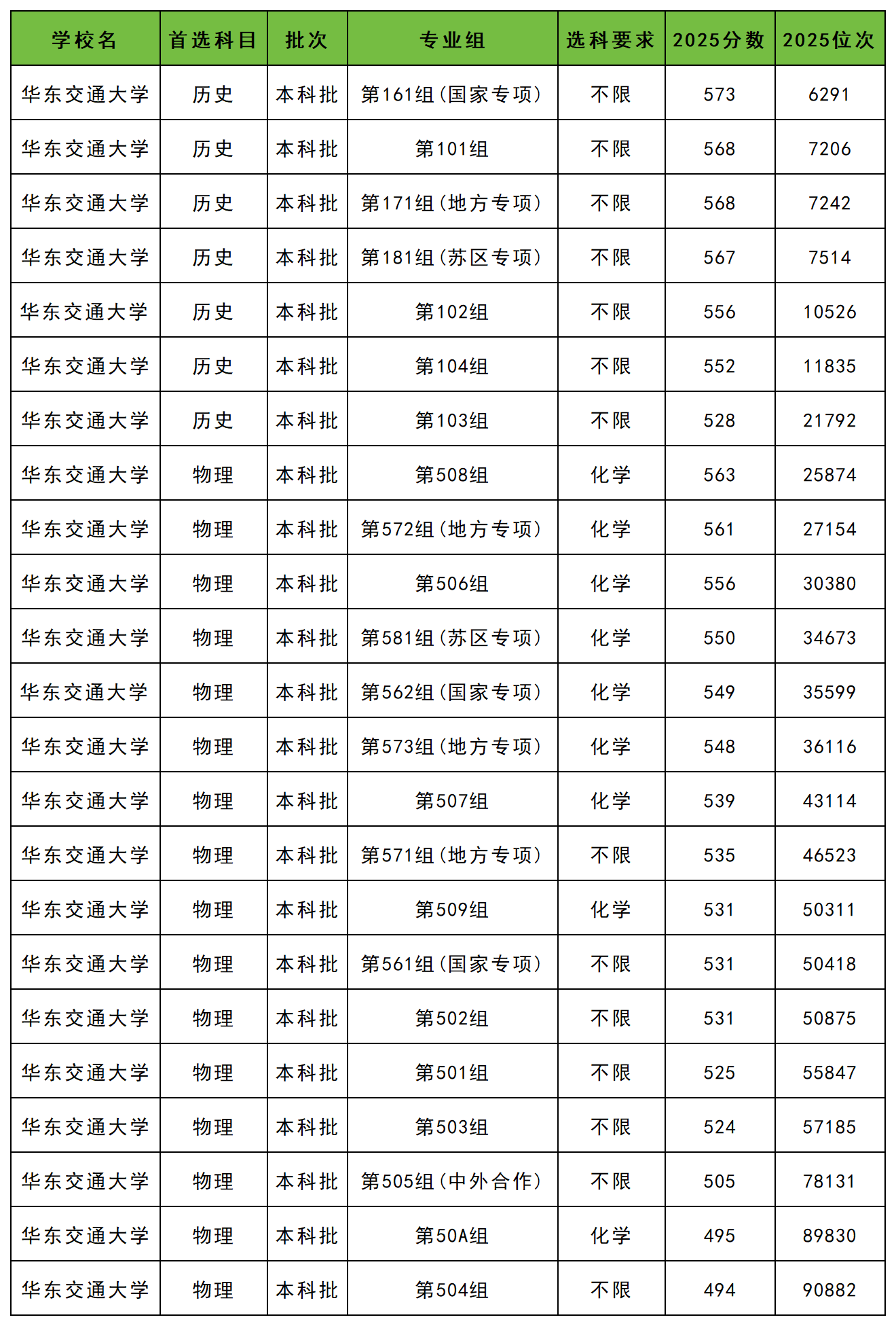 2025年华东交通大学最低分数线: