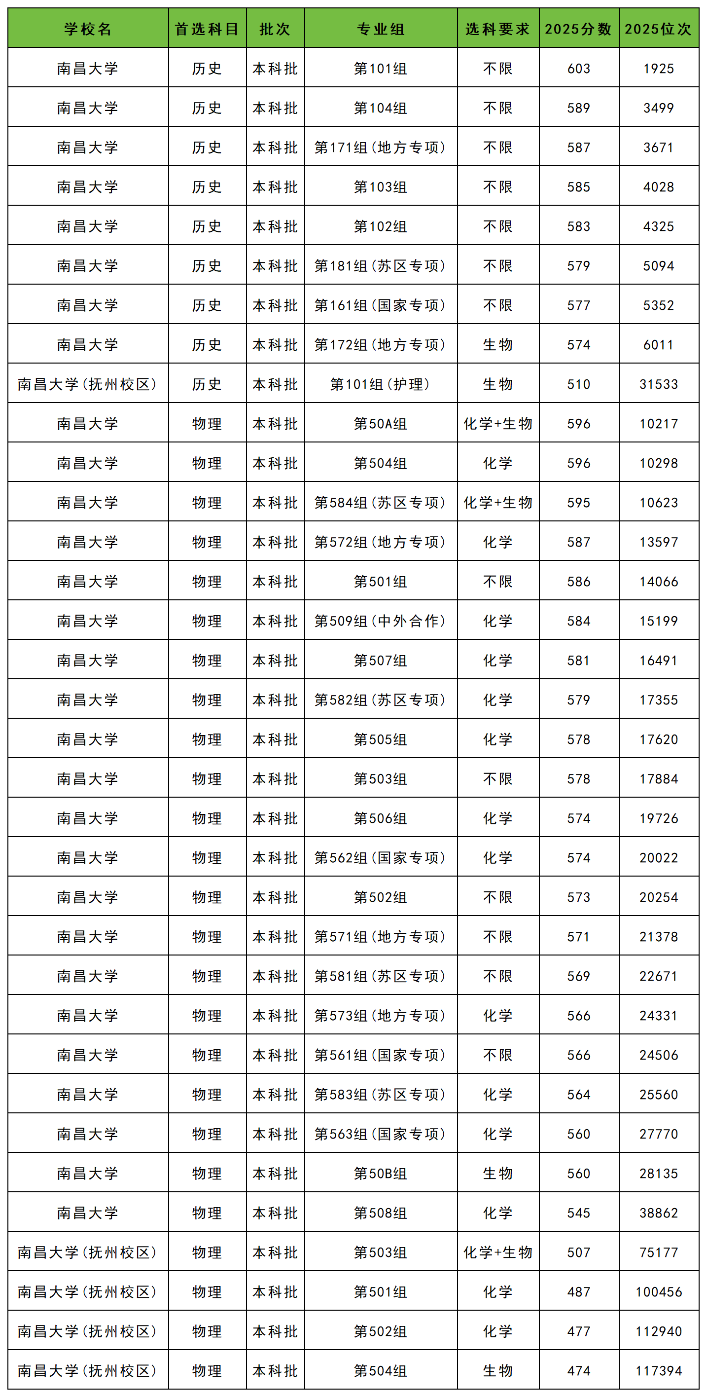 2025年南昌大学最低分数线: