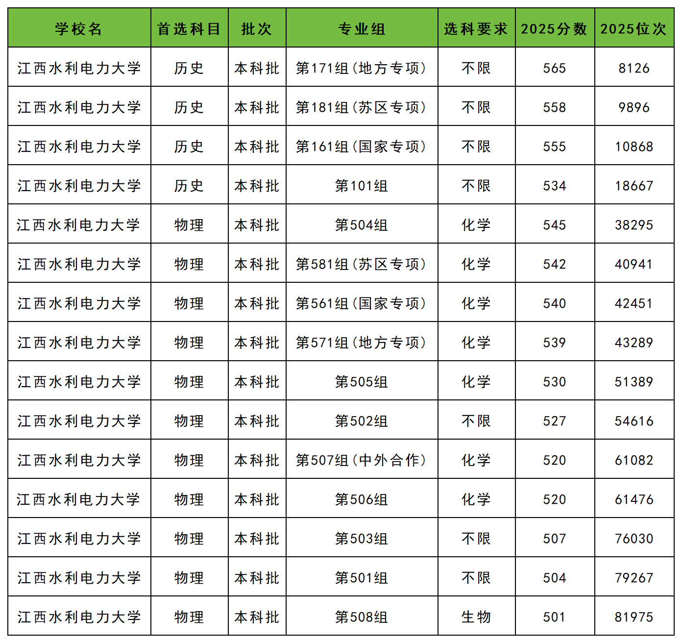 2025年江西水利电力大学最低分数线: