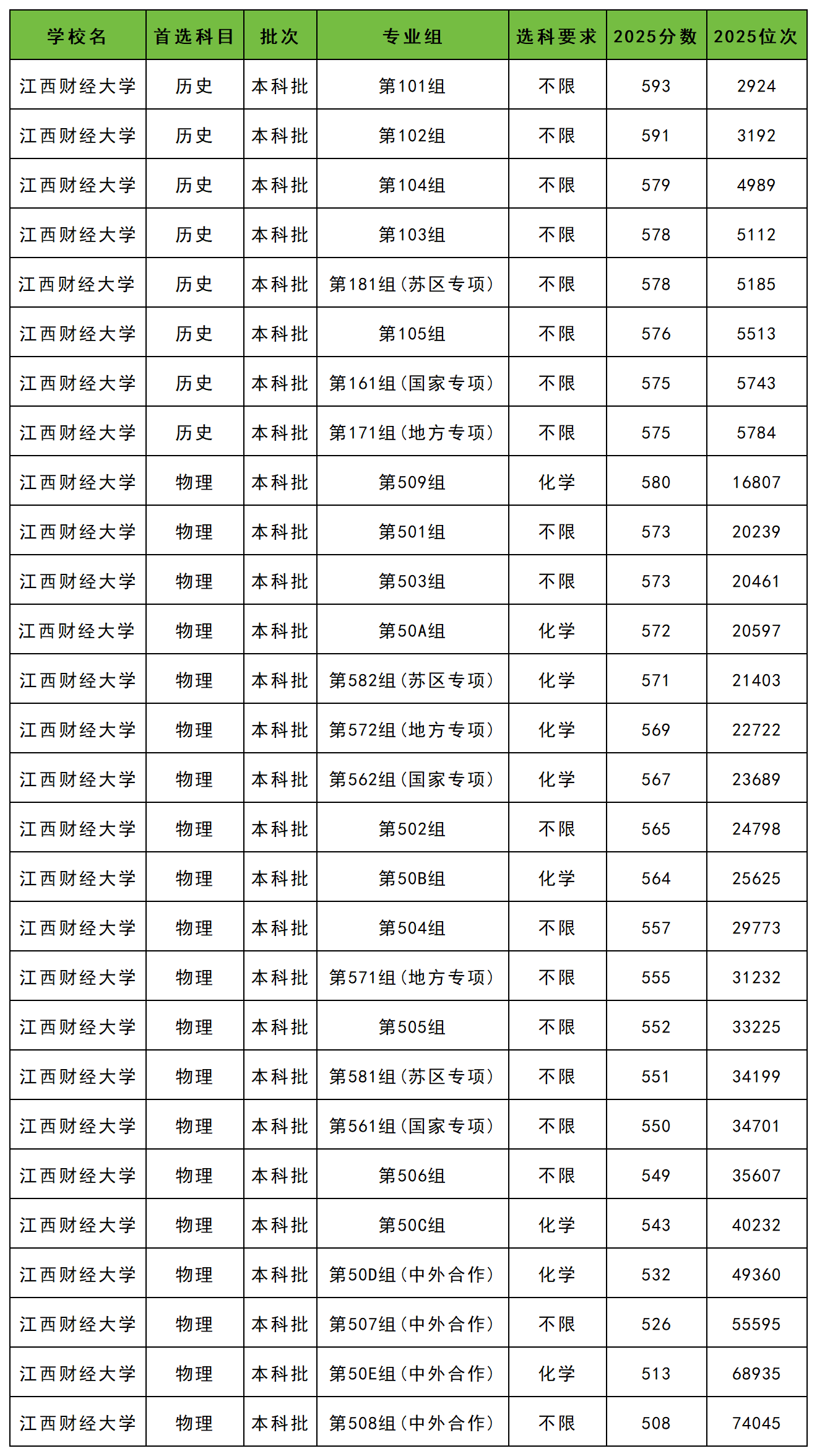 2025年江西财经大学最低分数线: