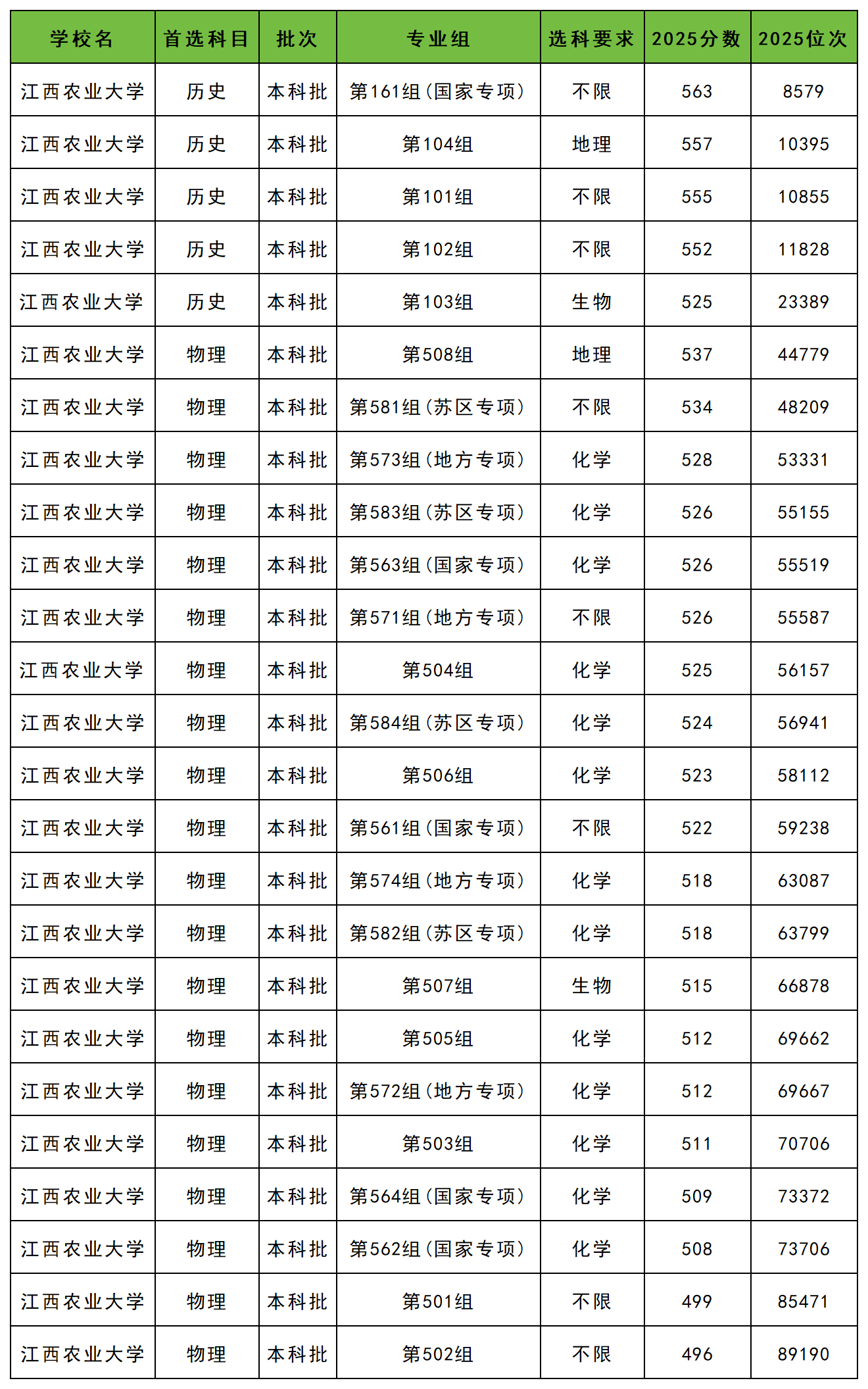 2025年江西农业大学最低分数线: