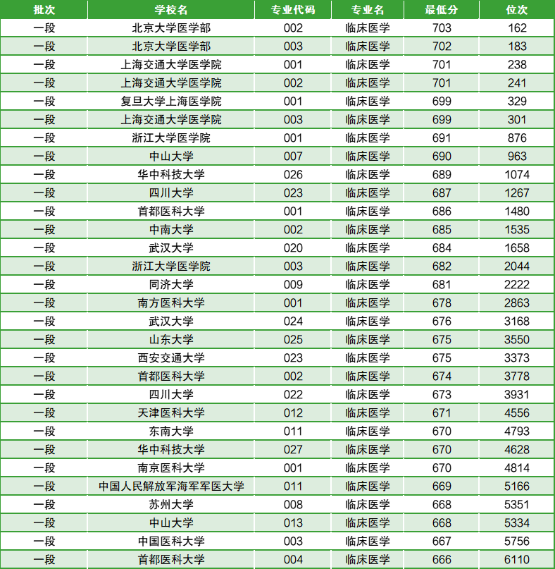 北京大学医学部:2024最低投档分702分,对应最低位次183名;