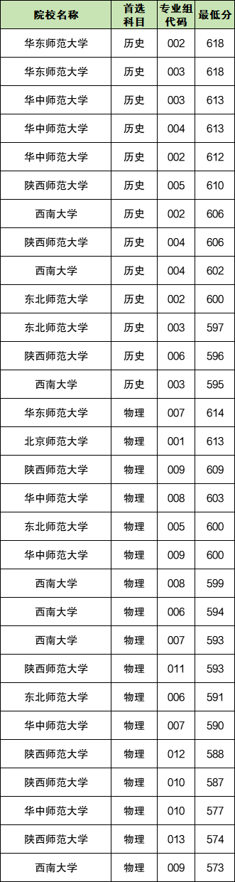 国家公费师范生院校:北京师范大学、东北师范大学、华东师范大学、华中师范大学、陕西师范大学、西南大学。