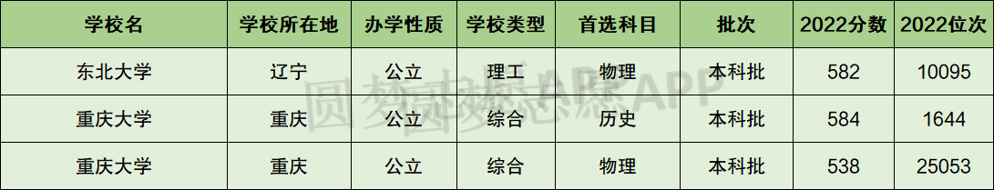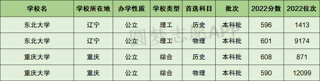 一、重庆大学和东北大学分数线