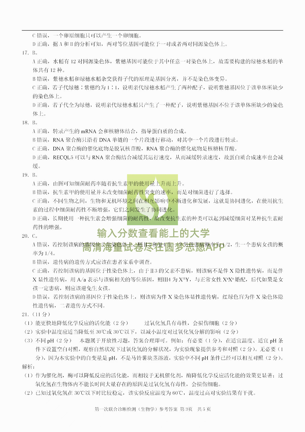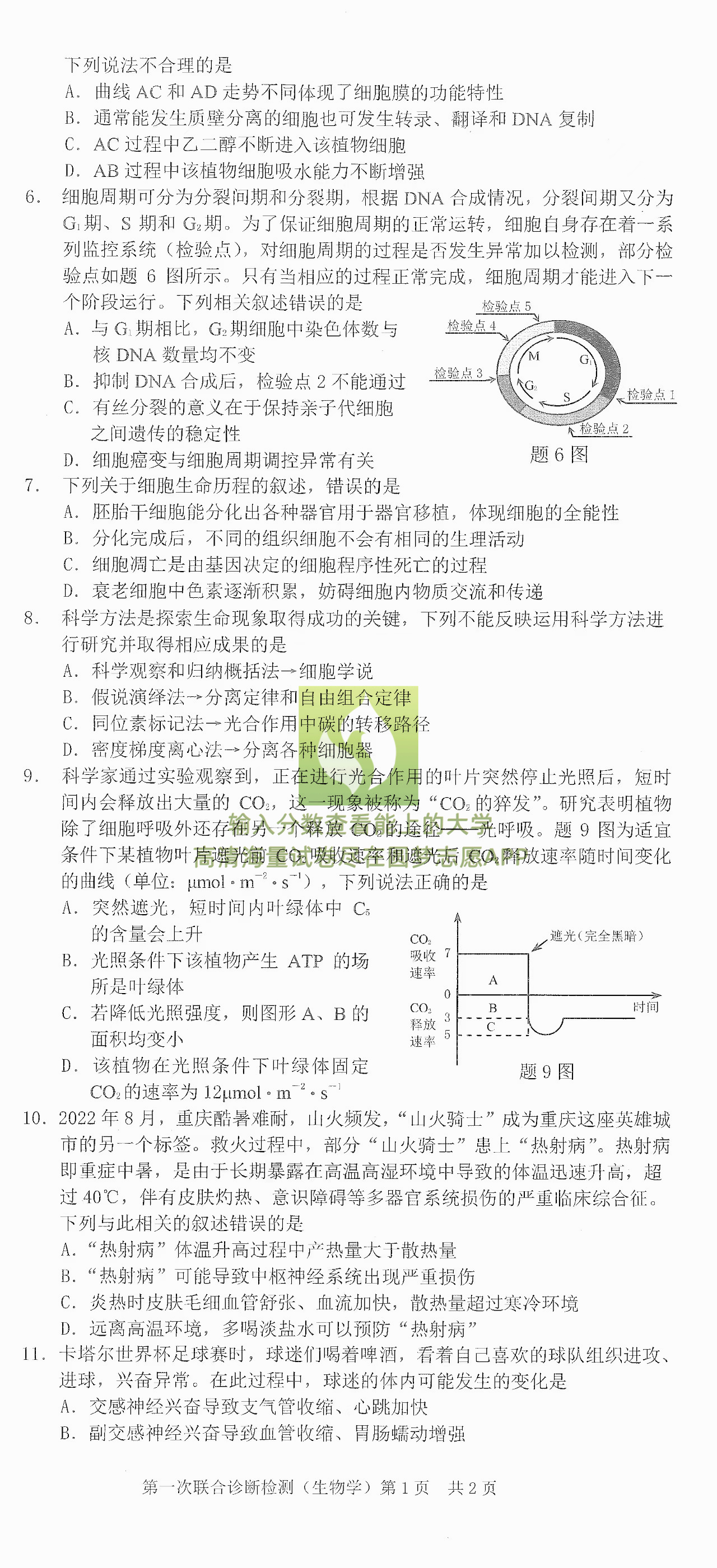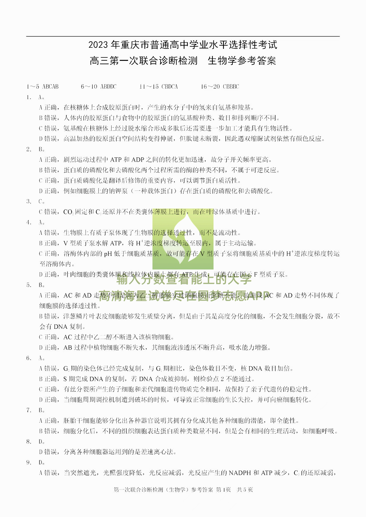 目前2023 重庆一诊生物答案已更新,具体试卷情况如下,如果大家想要了解更多试卷内容,可以进入高考100网进行查看,仅供参考。