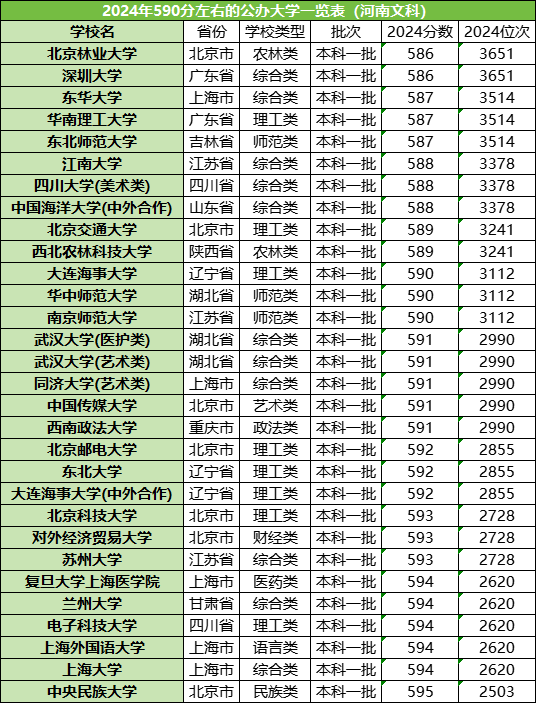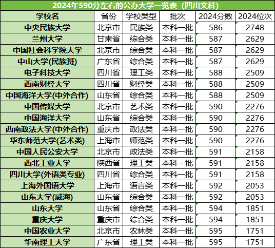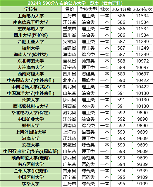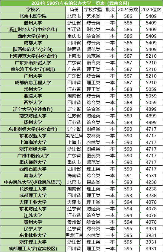 受分数线差异的影响,各省590分左右能上的院校都是有所不同的,小编在此以四川、河南、云南为例,整理了2024年这三个地区590分左右能上的院校名单,如下: