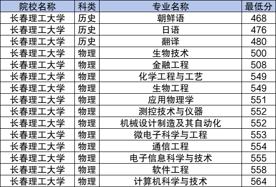 8、长春理工大学:历史类最低468分;物理类最低500分