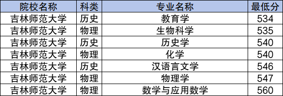 学校地方专项计划历史类最低分数线是534分,对应的招生专业是教育学;物理类最低分数线是535分,对应的招生专业是生物科学。