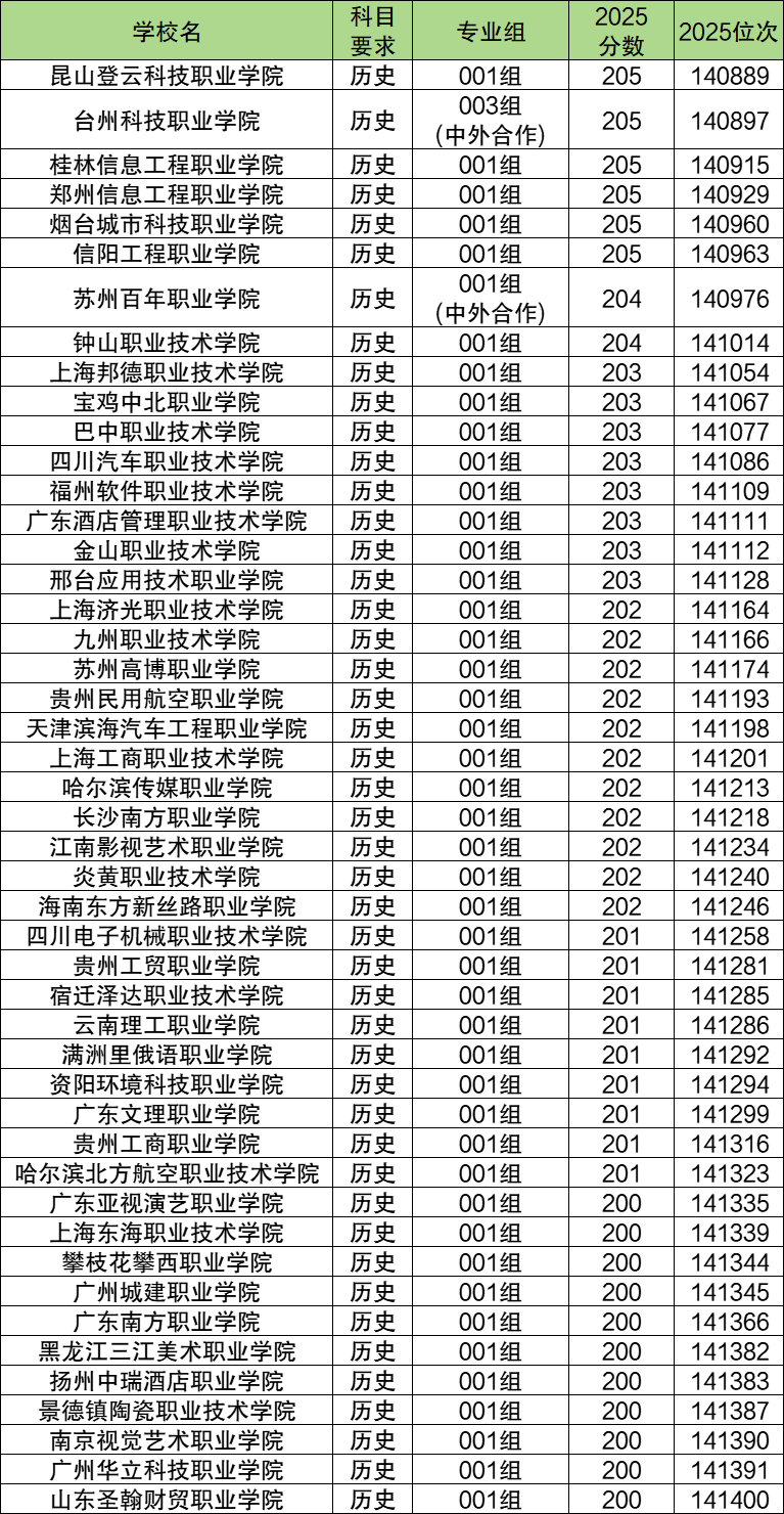 历史类:高职(专科)批分数线为200分,对应位次是141400名。