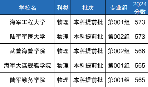 2024年黑龙江省的570分左右(565-575分)能上的军校一共有5所,均为本科提前批录取的院校。
