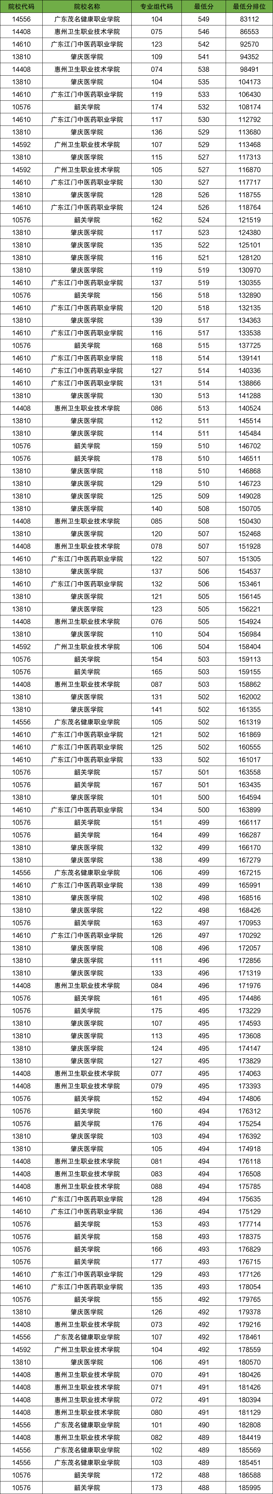 分数线较低的农村卫生专项计划大学还有广东茂名健康职业学院(489分)、惠州卫生职业技术学院(489分)、肇庆医学院(491分)等。