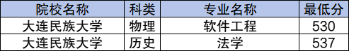 7、大连民族大学:历史类最低537分;物理类最低530分