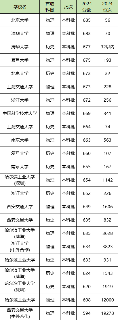 历史类:最低分为673分,位次32名;