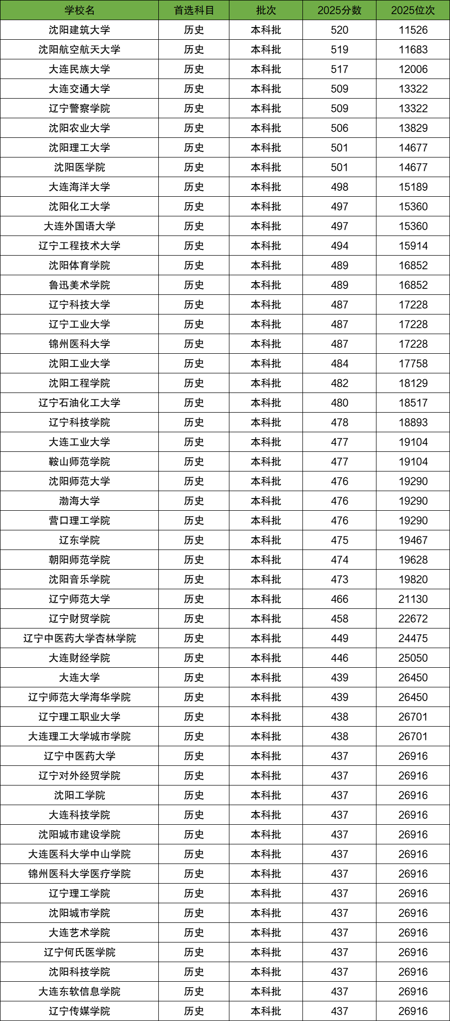 三、辽宁二本大学录取分数线(历史类)