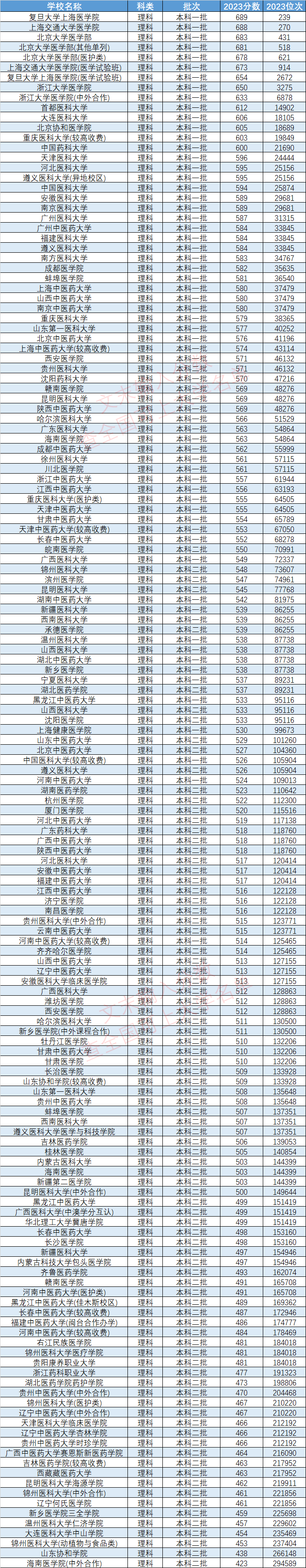 以下是2023年河南省各医药类大学理科最低录取分(供参考,图片可滑动查看,更多省份数据可在文章底部查询):