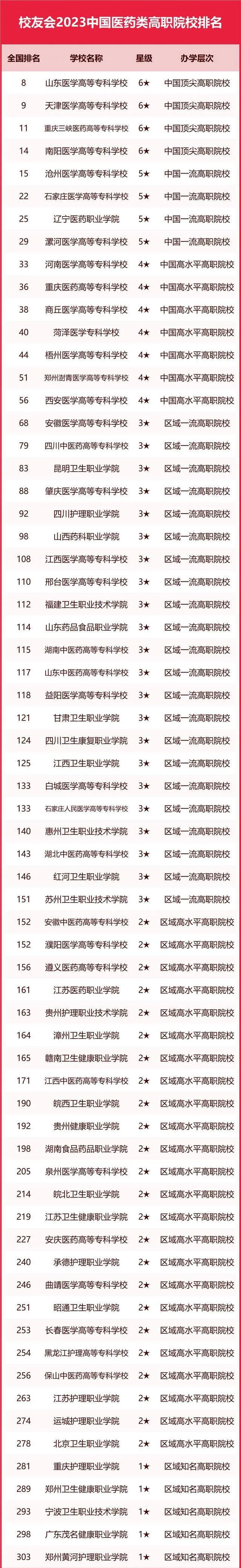 以下是校友会医药类高职院校上榜院校名单(供参考,图片可滑动查看):
