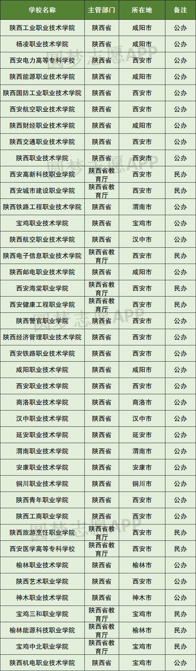 二、陕西专科学校全部名单