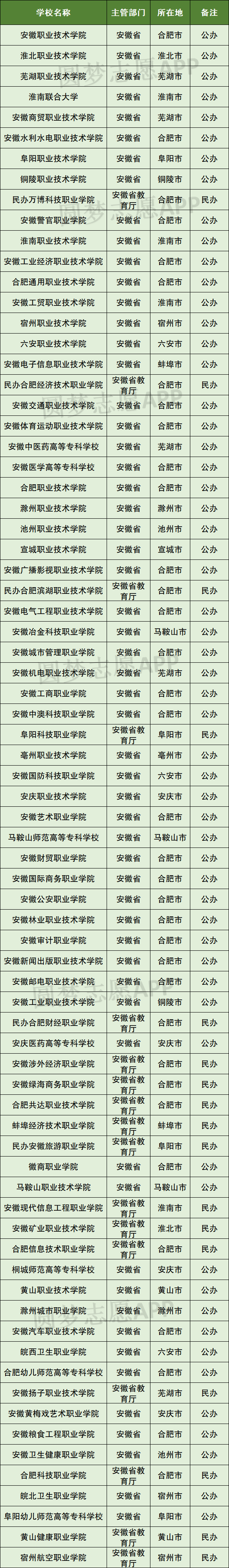 以下将分别介绍安徽省专科学校排名前十的学校名单。